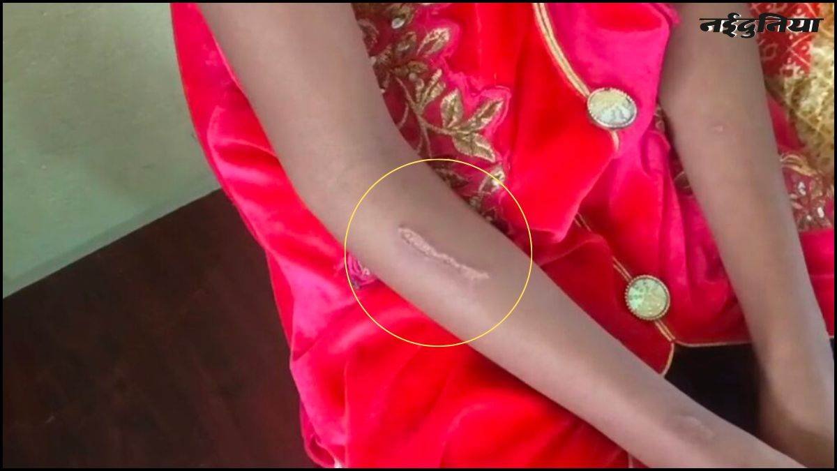 जिला मुख्यालय में संचालित सीडब्ल्यूएसएम छात्रावास में रहने वाली एक 10 वर्षीय दिव्यांग बच्ची ने हॉस्टल की एक महिला कर्मचारी पर गंभीर आरोप लगाए हैं। बच्ची का कहना है कि एक धार्मिक धागा हाथ में बंधा होने के कारण जब उसने उसे काटने से इनकार किया, तो हॉस्टल की मैडम अराधना पाटिल ने गर्म वस्तु से उसके दोनों हाथों को दाग दिया।