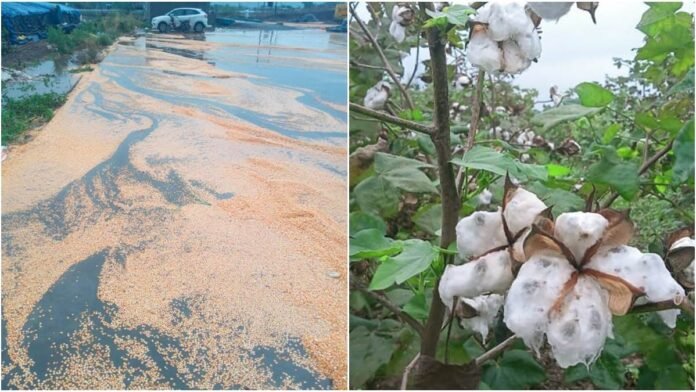 Rain in MP: खेतों में तैयार होकर चुनाई के लिए तैयार कपास की फसल भीग गई। तेज हवा चलने से बेल वाली फसल, सब्जियों को भी नुकसान हुआ। जिले में 24 घंटे के दौरान 19 मिमी बारिश हुई। खेतों में कटी पड़ी सोयाबीन और मक्का की फसल भी प्रभावित हुई है। कहीं-कहीं तो अंकुरण होने लग गया।