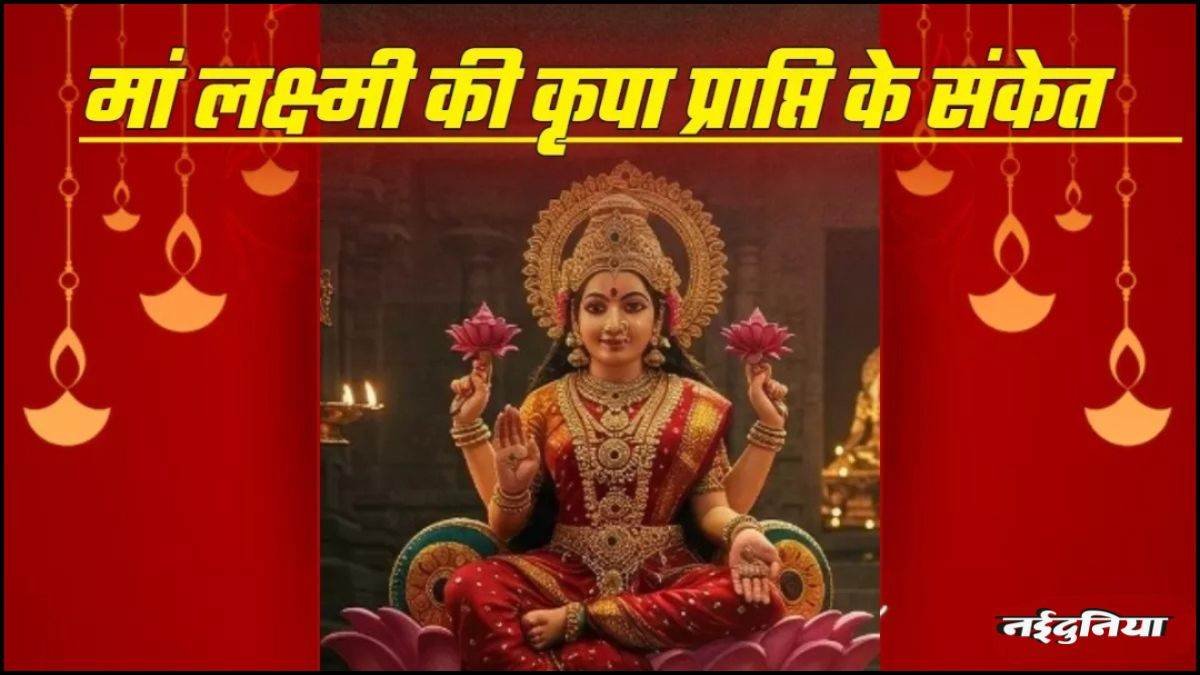 सनातन धर्म में मां लक्ष्मी को धन की देवी के नाम से भी जाना जाता है। धार्मिक मान्यता के अनुसार मां लक्ष्मी के प्रसन्न होने पर व्यक्ति को धन से जुड़ी समस्या से छुटकारा मिलता है लेकिन मां लक्ष्मी की कृपा प्राप्त होने पर कुछ खास संकेत मिलते हैं। चलिए जानते हैं इन संकेतों के बारे में।