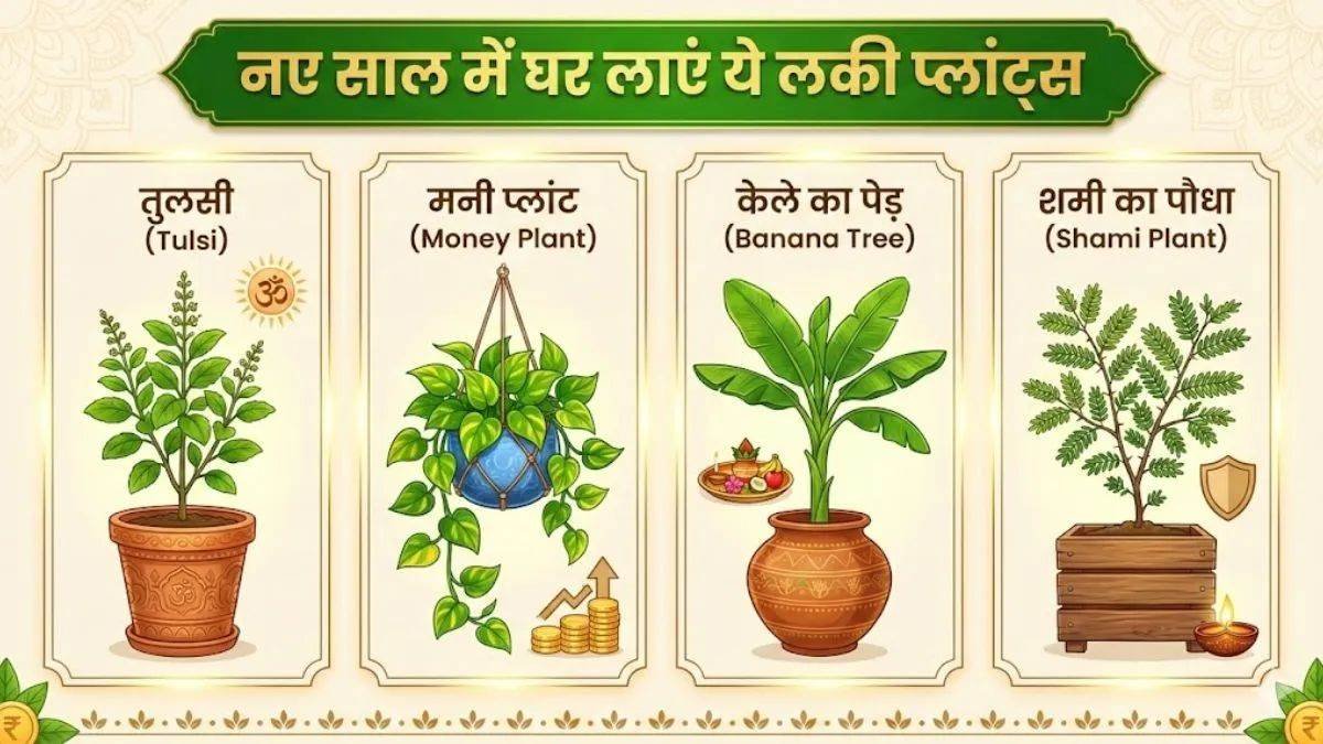टॉप न्यूज़ Vastu Tips: न्यू ईयर 2026 पर घर में लगाएं ये पौधे, सही दिशा बदलेगी आपकी किस्मत By Krishna - December 30, 2025 0 3 FacebookTwitterPinterestWhatsApp Vastu Tips: साल 2025 के समापन के साथ ही लोग नए साल 2026 की शुभ शुरुआत की तैयारी में जुट गए हैं। नए वर्ष के पहले दिन पूजा-पाठ और धार्मिक उपायों का विशेष महत्व होता है। सनातन धर्म और वास्तु शास्त्र में कुछ पौधों को अत्यंत शुभ माना गया है।